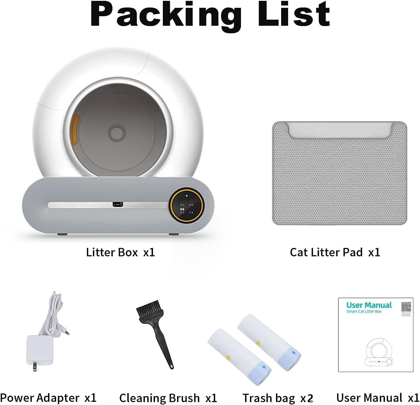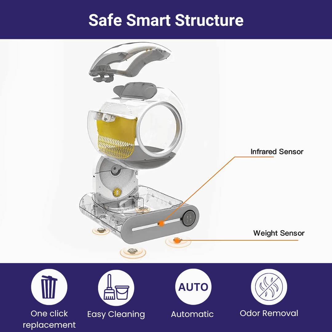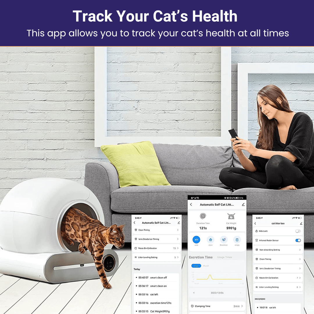 - Smart App Integration: Monitor your cat's health by tracking their weight, frequency of use, and duration, all from our dedicated app. Receive notifications when the waste bin is full.